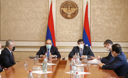 Հայաստանի վարչապետ Նիկոլ Փաշինյանը և Արցախի Հանրապետության նորընտիր նախագահ Արայիկ Հարությունյանը Ստեփանակերտում հանդիպում են ունեցել ՀՀ և ԱՀ բանկային համակարգերի ներկայացուցիչների հետ` Կենտրոնական բանկերի ղեկավարների գլխավորությամբ:
