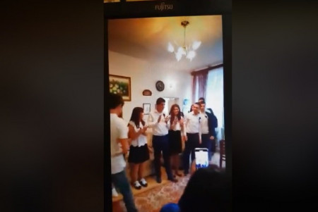Մայիսի 25-ին այսպես վերջին զանգ են նշել Երեւանի 114 դպրոցի շրջանավարտները։ Հ.Գ. Պարող կինը, պարզվում է, դպրոցի տնօրենն է: