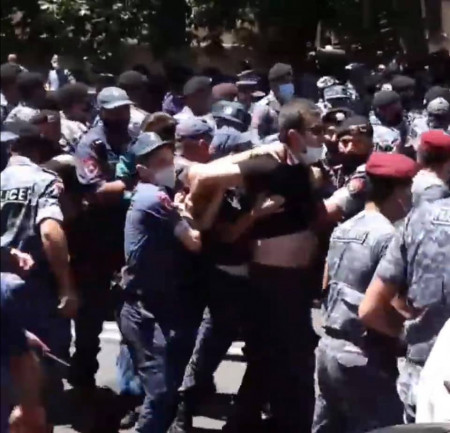 Առնվազն 5 ոստիկան ձեռքերը ոլորելով ձերբակալում է խաղաղ հավաքի դիտարկում իրականացնող իրավապաշտպանի։ Իշխող քաղաքական ուժի ներկայացուցիչները պնդում են - ամեն ինչ իրավաչափ է, իսկ Եվրոպան ոչինչ էլ չի պնդում. Եվրոպան չկա։
