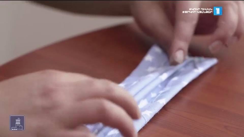 Րոպեներ առաջ Հ1-ով ցուցադրում էին տեսանյութ՝ թե ինչպես տնային պայմաններում, սովորական կտորով, կարել և կրել դիմակ: Ի դեպ տեսանյութը պատրաստվել է ՀՀ կառավարության առաջարկով:
