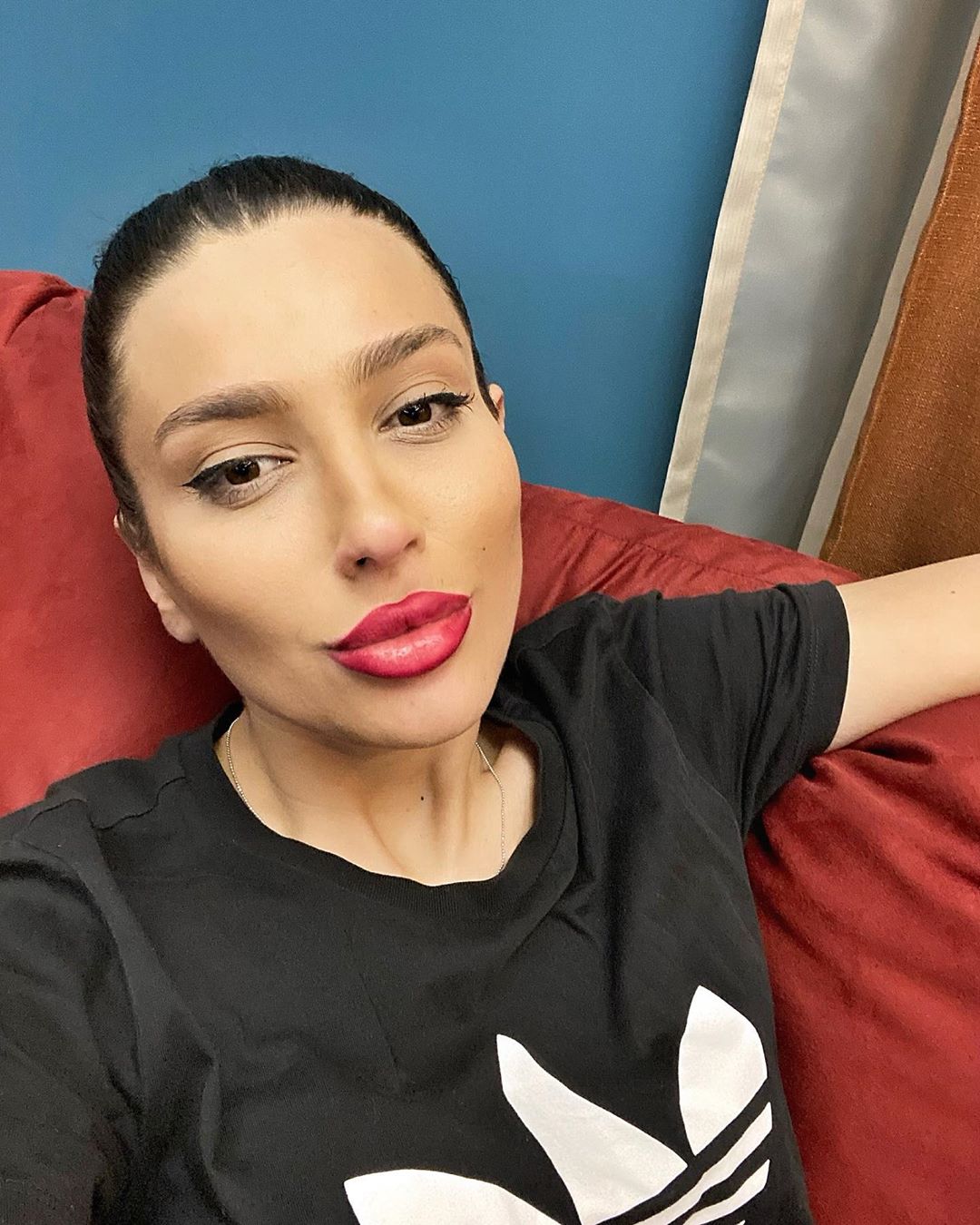 Instagram-յան էջում հրապարակված կադրերում դերասանուհին սեւ շապիկ է կրում։ Երիտասարդ մայրիկն արձակել է մազերը, նախապատվություն տվել արտահայտիչ շպարին. ընդգծված են շուրթերն ու աչքերը։ «Սելֆիի ժամանակ»,- հրապարակումը մակագրել է նա։