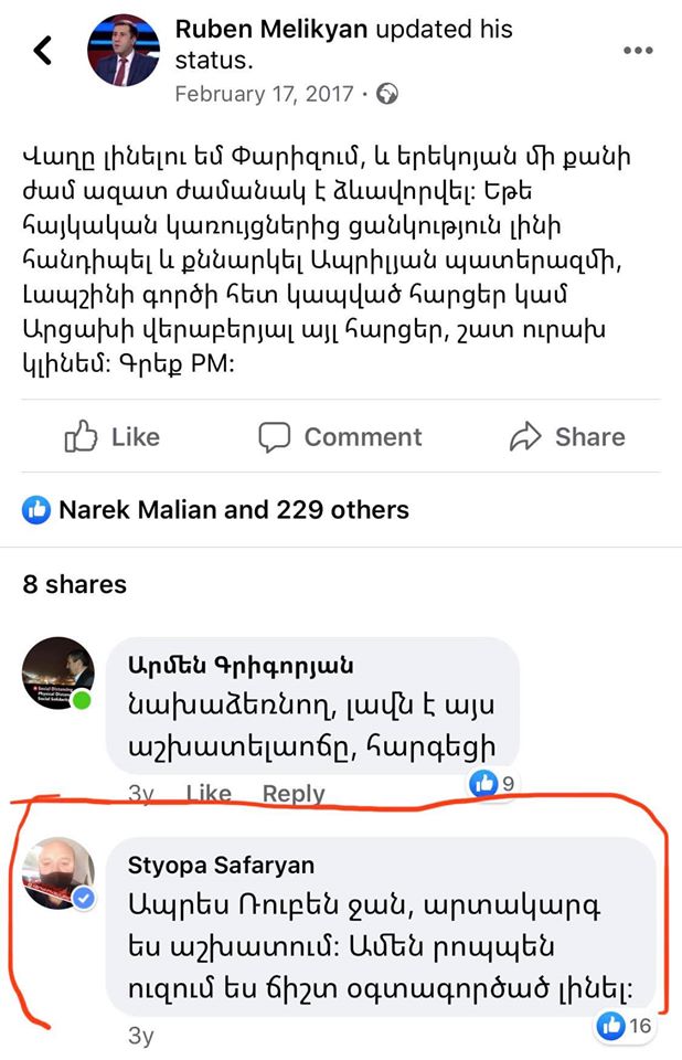 Նարեկ Մալյանի ֆեյսբուքյան էջից