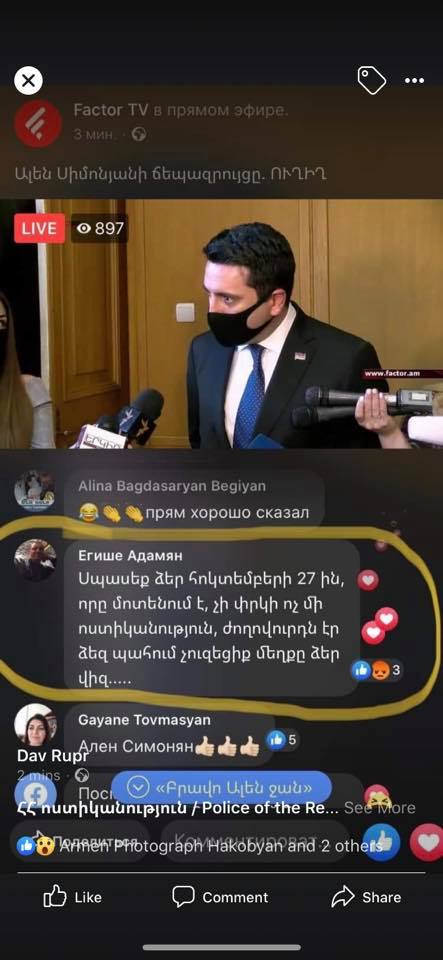 «Պետք է սրանով զբաղվել»․ Ալեն Սիմոնյանը դիմում է ոստիկանությանը. Լուսանկար