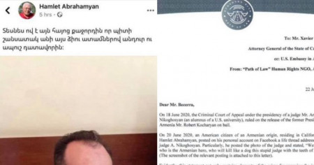 Հանցագործության մասին հաղորդմամբ «Իրավական ուղի»-ն դիմել է ԱՄՆ Կալիֆոռնիա նահանգի գլխավոր դատախազին