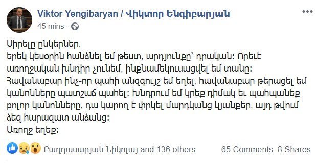 Արամ Գևորգյանի ֆեյսբուքյան էջից