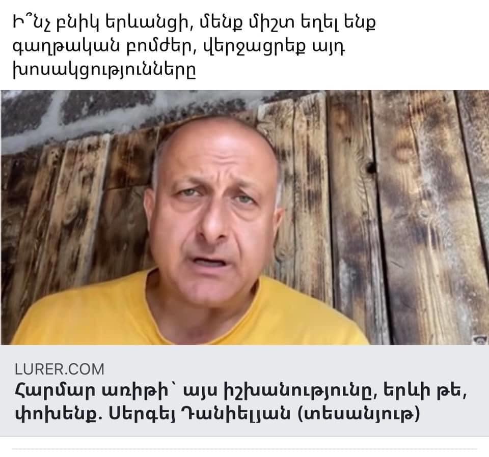 Ըստ Սերգեյ Դանիելյանի՝ հայերը «գաղթական բոմժեր» են։ Հետաքրքիր է որտեղի՞ց ենք գաղթել։ Կարո՞ղ ա Յոժը Ալիեւի կորած եղբայրն է եւ ինքն էլ է Ալիեւի կարծիքին, որ հայերը հիմա ապրում են իրենց պապական հողերի վրա։