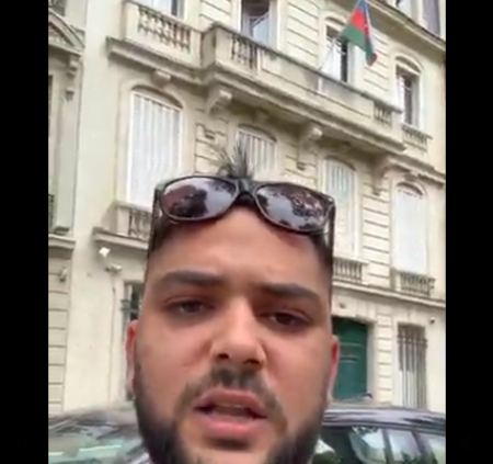 Մեր պատասխանը՝ ձեր ծիրան ճզմելուն․ Փարիզում Ադրբեջանի դեսպանատան դիմաց հայ երիտասարդը պատասխանում է ադրբեջանցիներին․ տեսանյութ