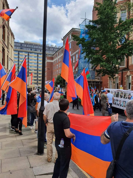 Լոնդոնում հայերն ու ադրբեջանցիները դեմ դիիմաց բողոքի ակցիա են իրականացնում. Տեսանյութ