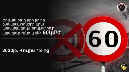 Հիշեցնենք, որ Ոստիկանությունից տեղեկացրել էին, որ երթևեկության անվտանգության բարելավման և ճանապարհատրանսպորտային պատահարների նախականխման նպատակով Երևան քաղաքի այն ճանապարհահատվածներում, որտեղ տրանսպորտային միջոցների երթևեկության թույլատրելի առավելագույն արագությունը 60 կմ/ժ-ից ավելի է սահմանված, կկատարվի երթևեկության կազմակերպման փոփոխություն, որի արդյունքում նման բոլոր ճանապարհահատվածներում երթևեկության թույլատրելի առավելագույն արագությունը կսահմանվի 60 կմ/ժ: