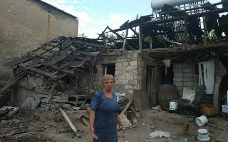 Տիկին Լիդիան կանգնած է իրենց տան կողքին գտնվող փռի դիմաց, որը գրեթե ամբողջությամբ փլվել է, բայց որևէ ընկճվածություն չկա