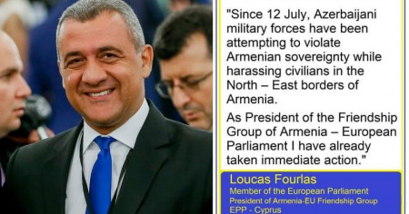 Եվրախորհրդարանի պատգամավոր, ՀՀ-ԵՄ բարեկամական խմբի ղեկավար Լուկաս Ֆոուրլաս. «Հուլիսի 12-ից Ադրբեջանի զինված ուժերը փորձում են խախտել Հայաստանի ինքնիշխանությունը` ոտնձգություն գործելով քաղաքացիական բնակչության նկատմամբ Հայաստանի հյուսիսարևելյան սահմանների ուղղությամբ։