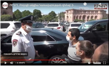 Ոստիկանը բոլորին թողնում է, որ ցույց անեն, իսկ ՀՅԴ-ական Գոռին ու Քրիստինեին ճանաչում է և պահանջում, որ հեռանան. Լուսանկար