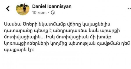 Սորոսական Դանիել Իոաննիսյանը առաջարկում է անդրադառնալ ահաբեկիչ մարդասպանների մոտիվացիային: Սորոսականը փորձում է արդարացնել 3 ոստիկանի սպանությունը, բժիշկների պատանդառումը, բանկոմատի թալանը, 7 երեխայի որբանալը: