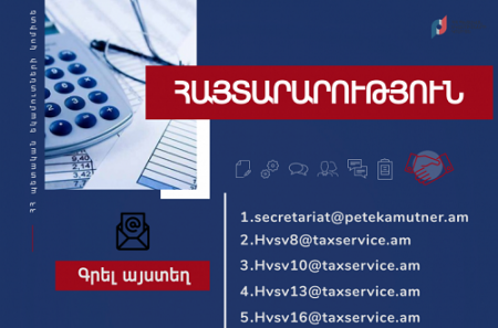 Պետական եկամուտների կոմիտեն նշված տարածքներում հաշվառված հարկ վճարողներին և քաղաքացիներին հորդորում է ՀՀ հարկային օրենսդրությամբ սահմանված կարգով դիմումները և փաստաթղթերը, ինչպես նաև վերջիններիս հուզող հարցերը ներկայացնել էլեկտրոնային հետևյալ հասցեներով․