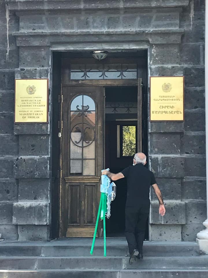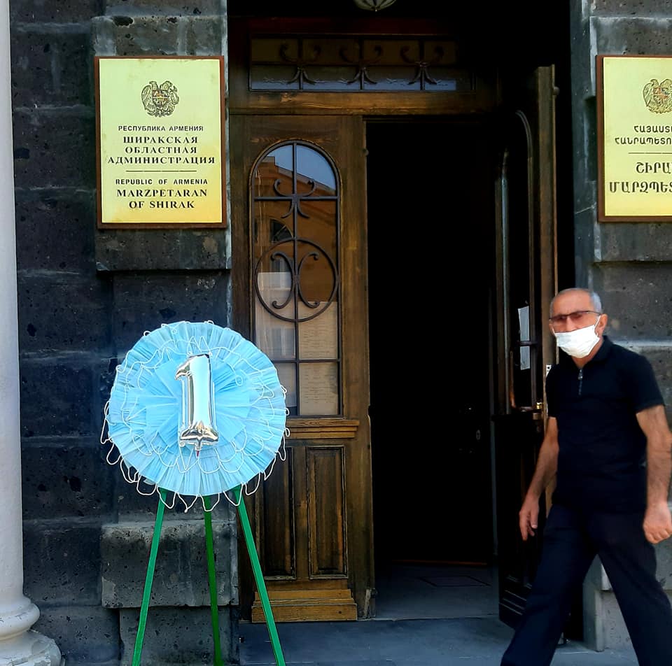 Հ.Գ դիմակներով պսակ նվիրեցինք Շիրակի մարզպետարանին, հուսով, որ կփոխանցեն իրենց դասալիք վարչապետին: