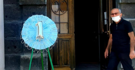 «Ապաշնորհների պատճառով կորցրեցինք սեպտեմբերի 1-ի խորհուրդը». ի նշան բողոքի՝ գյումրեցիները դիմակներով պսակ են նվիրել Շիրակի մարզպետարանին