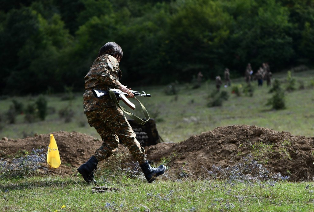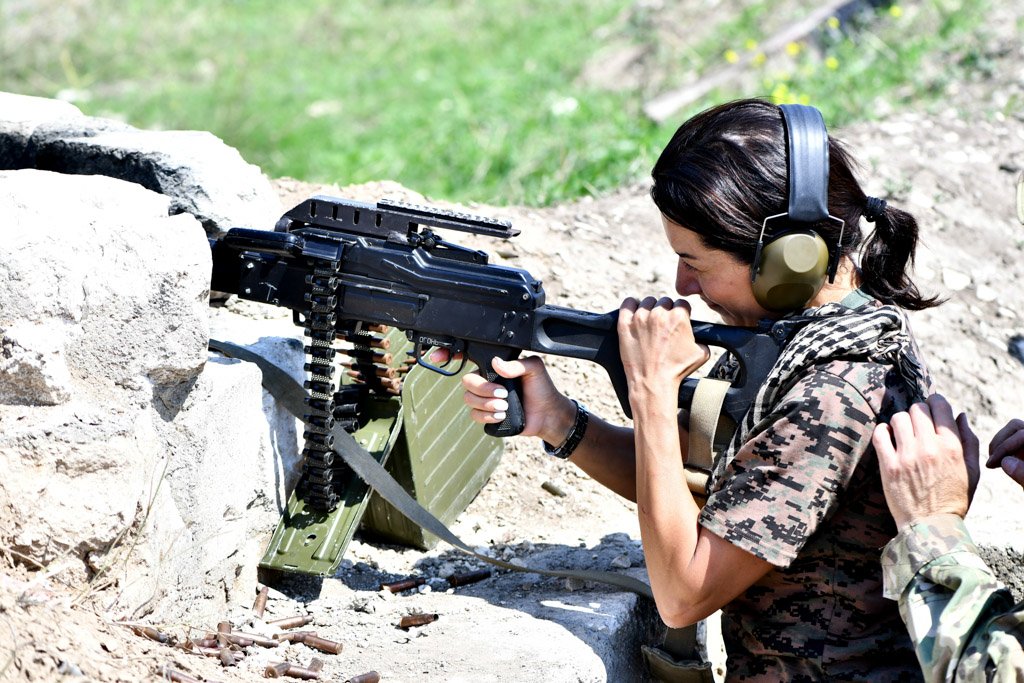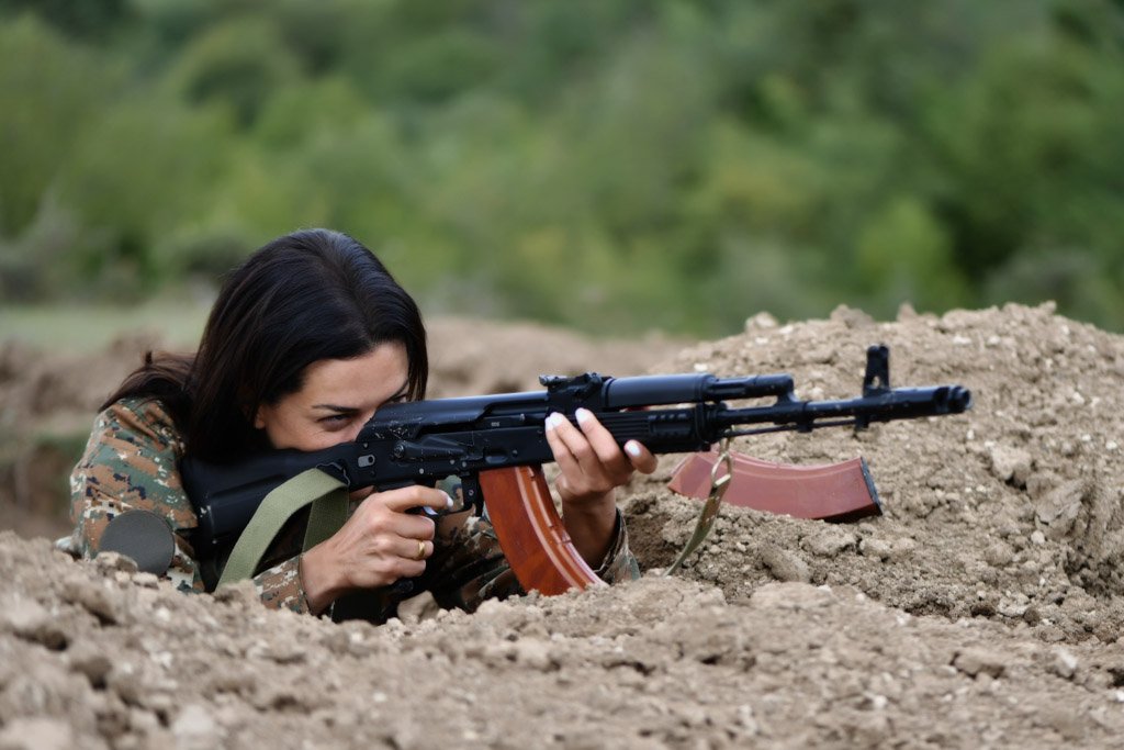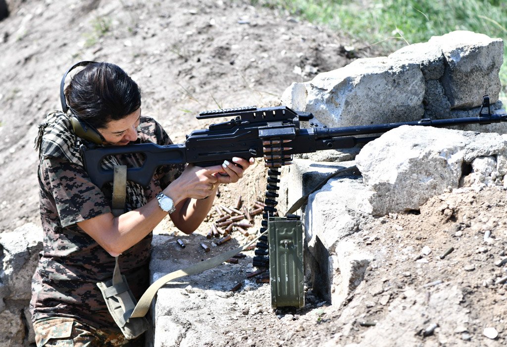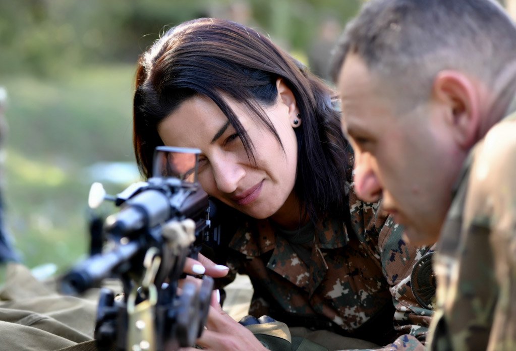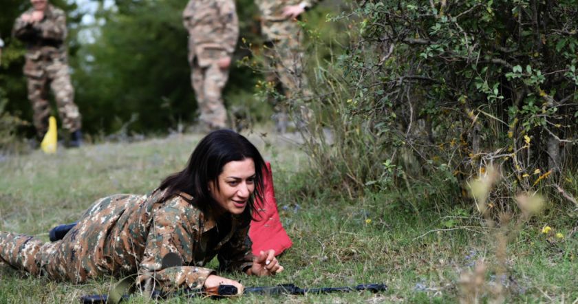 Աննա Հակոբյանի մասնակցությամբ արցախցի մի խումբ կանայք անցել են մարտական և կրակային պատրաստության յոթօրյա դասընթաց. Լուսանկար
