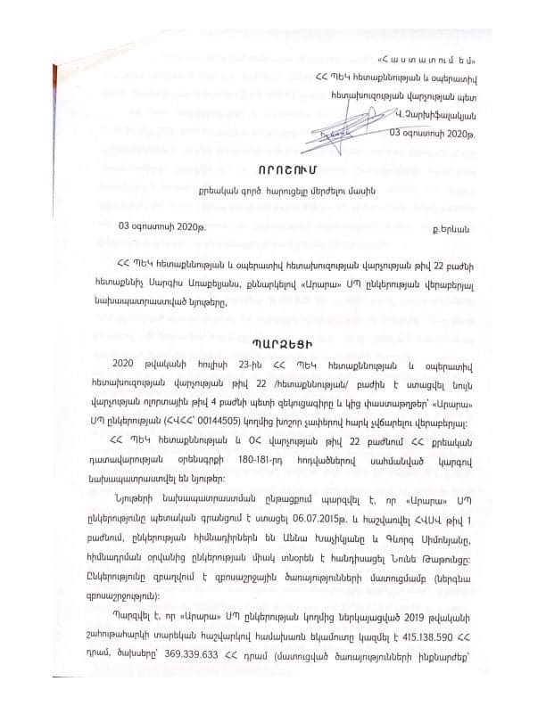 Վերջաբան։ Լոքդաունից ընդամենը 13 օր հետո, 2.5 ամիս ընկերությանը քրքրել, վերջում ոչմիբանի համար գործ փորձել հարուցել, ընկերության համար ստեղծել հավելյալ 2 500 000 դրամի հաշվապահական և իրավաբանական ծախսեր ու վերջում գործը փակել դրա հետ մեկ տեղ ընկերությունդ ստուգված չի համարվում հարկայինի կողմից: Համաձայնեք, որ ավելի կոմֆորտ էր թալանչի Սերժ Սարգսյանի օրոք բիզնես անելը Հայաստանում քան հիմա(Մեծ ամոթ եմ զգում վերջին նախադասությունը գրելու համար, բայց փաստը մնումա փաստ) Հուսամ նաև ամոթ կզգա մեր կառավարությունը նման սրիկա համակարգ ունենալու համար: