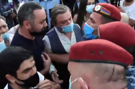 Առանձնատան մոտ ակցիայի մասնակիցները հանդիպեցին ոստիկանական պատի: Ոստիկաններից մեկը նշեց, որ գիտեն, թե ակցիայի մասնակիցներն ուր են գնում, սակայն սոցիալական հեռավորություն պահպանելու համար թույլ չեն տալիս, որ քաղաքացիներն առաջ գնան: