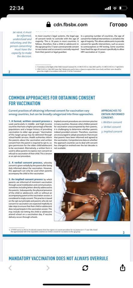 Շատ նուրբ տեքստով ԱՀԿ-ն ասում է , որ այն երկրները , որոնք ընդունել են Լանզարոտի կոնվենցիան , առանց ծնողի համաձայնության կարող են երեխային պատվաստել ։ Այս նյութը ԱՀԿ-ի պաշտոնական էջից է ։ Հարգելի ծնողներ սթափ եղեք և մի հաշտվեք այս օտարածին կոնվենցիաների հետ ։