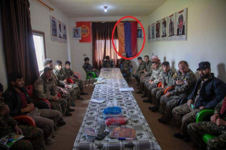 Սրանք պնդում են, որ 250 հոգանոց հայկական խումբը, որը Սիրիայում կռվում էր իբրև թե PKK-ի կողմից, այժմ ժամանել է Հայաստան, որպեսզի «ահաբեկչական գործողություններ իրականանցի Ադրբեջանի սահմանամերձ» տարածքներում։ Հոդվածին կից հրապարակել են նկար, որտեղ իբրև թե այդ խմբի հավաքն է։ Այնքան տգետ են, որ նույնիսկ այս բեմականացումը չեն կարողացել համոզիչ անել և Հայաստանի դրոշը թարս կախել։ բոլորն էլ գիտեն, որ Հայաստանի դրոշը այնպես է կախվում, որ կարմիր գույնը լինում է առաջինը, ոչ թե վերջինը։ Մի խոսքով, այս նկարը շատ լավ փաստարկ է, որպեսզի մենք միջազգային հանրությանը ցույց տանք, թե ինչպիսի բեմականացում է կազմակերպում Թուրքիան և պարզապես սադրում ու իրավիճակ սրում։ Նկարում այլ դետալներ ևս կան, սակայն դրանք չեմ բարձրաձայնի, որպեսզի հաջորդ անգամ այն չշտկեն։