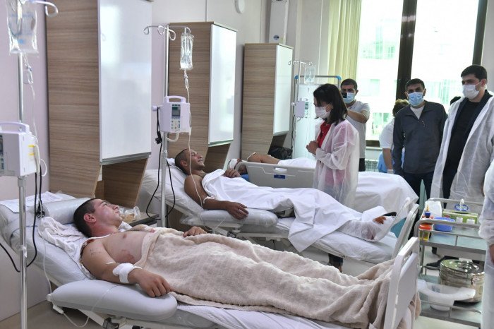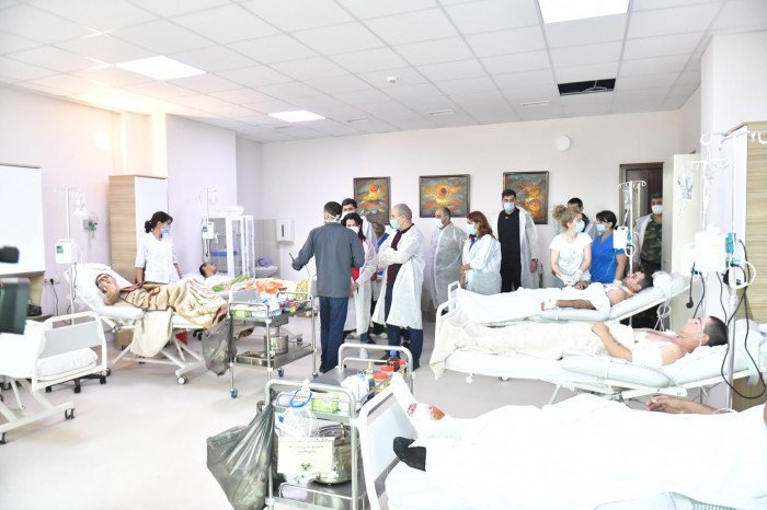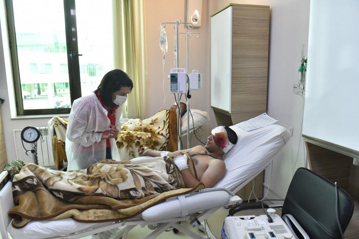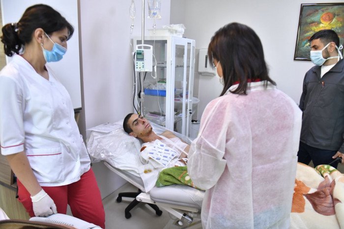 «Արցախի Հանրապետության նախագահի տիկին Քրիստինա Հարությունյանի հետ այցելեցինք Հանրապետական բժշկական կենտրոն՝ տեսակցելու մեր վիրավորներին։