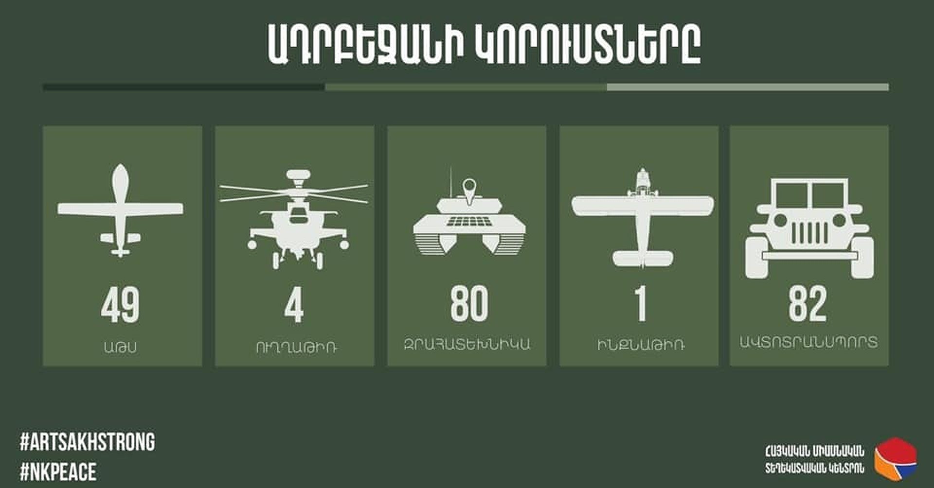 ՀՀ ՊՆ մամուլի խոսնակ Շուշան Ստեփանյանը հրապարակել է հայկական զինուժի կողմից հակառակորդի խոցված սպառազինության վերաբերյալ թարմացված տեղեկատվություն: