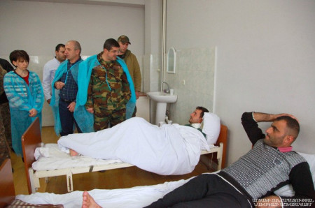 Երկրի ղեկավարը զրուցել է նրանց հետ, հետաքրքրվել բուժման ընթացքով, մաղթել շուտափույթ ապաքինում: «Դուք ձեր ընկերների հետ մեծ սխրանք եք գործել՝ ձախողելով հակառակորդի՝ մեր ժողովրդի ֆիզիկական անվտանգությանը սպառնացող սադրիչ գործողությունները: Գլուխ եմ խոնարհում հայրենիքին մատուցած ձեր ծառայության առջև»,- ասել է Հանրապետության նախագահը և ավելացրել, որ, շնորհիվ հայ ժողովրդի կողմից մղվող միասնական և միահամուռ պայքարի, ստեղծված իրավիճակը հաղթահարելու ենք պատվով: