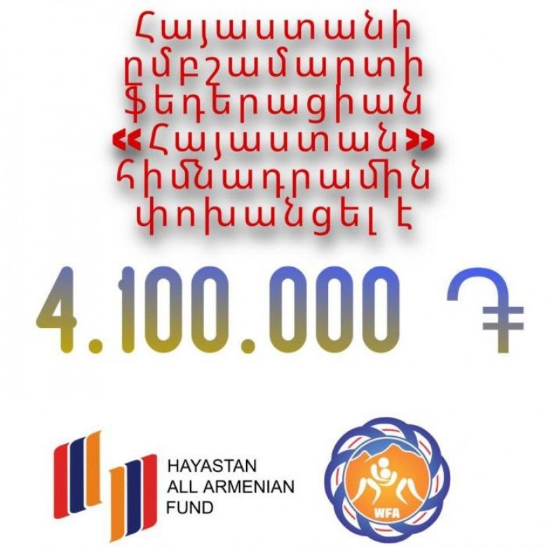 Հայաստանի ըմբշամարտի ֆեդերացիան ավելի քան 4 միլիոն դրամ է փոխանցել «Հայաստան» համահայկական հիմնադրամին