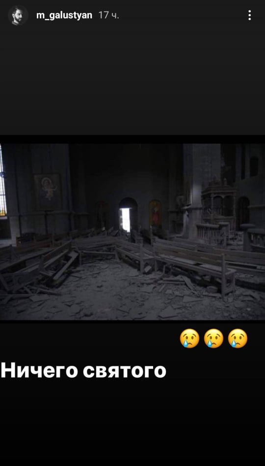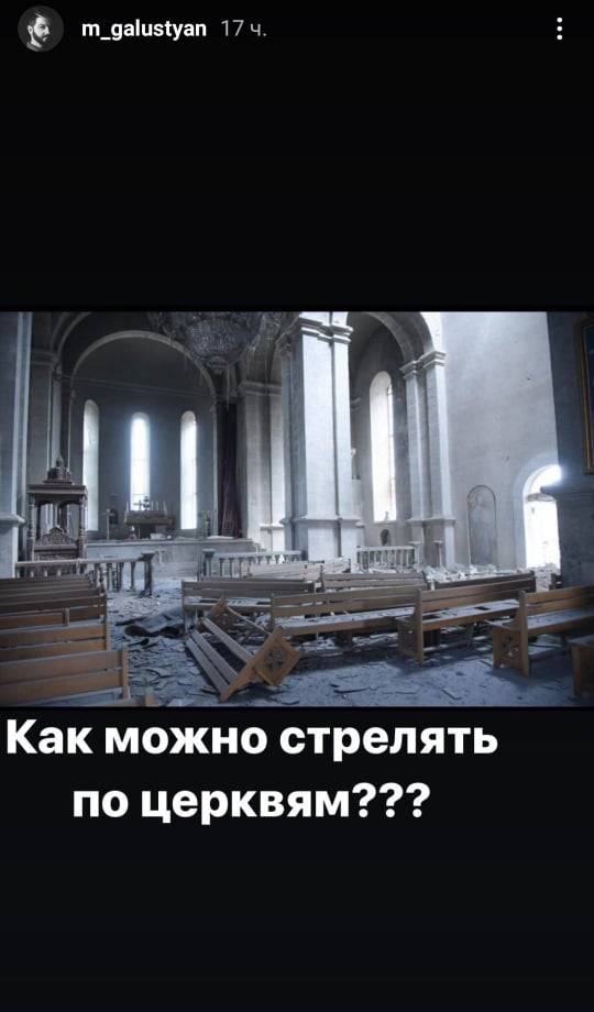 Ռուսաստանաբնակ հայտնի շոումեն Միխայիլ Գալուստյանն անդրադարձել է Շուշիի Սուրբ Ամենափրկիչ Ղազանչեցոց Մայր տաճարի հրթիռակոծությանը։