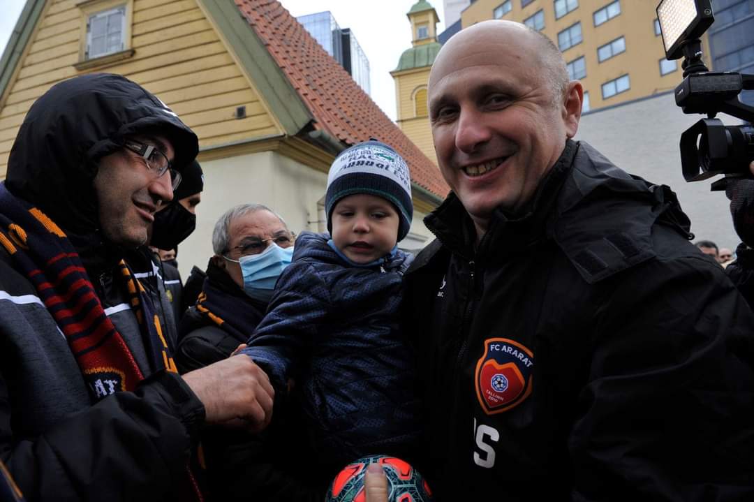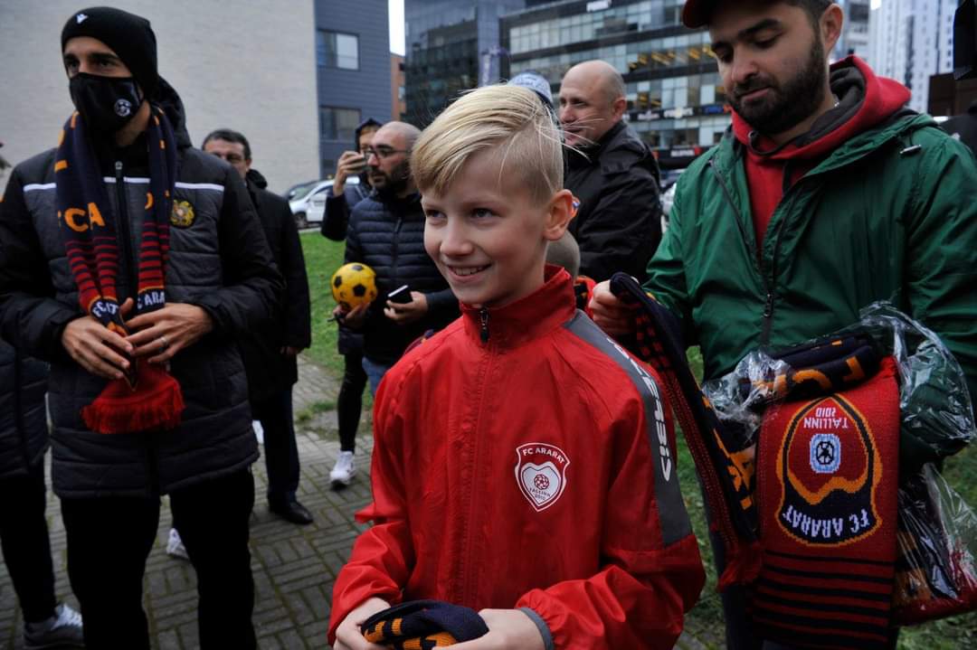 Հոկտեմբերի 14-ին Հայաստանի ազգային հավաքականի ֆուտբոլիստներն այցելեցին Էստոնիայի մայրաքաղաք Տալլինի հայկական եկեղեցի: Այստեղ նրանց դիմավորեցին Տալլինի հայկական համայնքի ներկայացուցիչները, ինչեպես նաև Տալլինի «Արարատ» հայկական ակումբի պատանի ֆուտբոլիստները: Եկեղեցում մոմ վառելուց հետո ազգային հավաքականի ֆուտբոլիստները լուսանկարվեցին հայկական խաչքարի մոտ: «Արարատ» ակումբի պատանի ֆուտբոլիստները ակումբային շարֆեր նվիրեցին Հայաստանի ազգային հավաքականի ֆուտբոլիստներին: