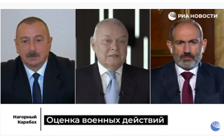 Հայաստանի և Ադրբեջանի ղեկավարներ Նիկոլ Փաշինյանը և Իլհամ Ալիևը միաժամանակ պատասխանել են «РИА Новости»-ի հարցերին Լեռնային Ղարաբաղի հարցով: Հարցազրույցը վարել է «Россия сегодня» մեդիախմբի գլխավոր տնօրեն Դմիտրի Կիսիլյովը: