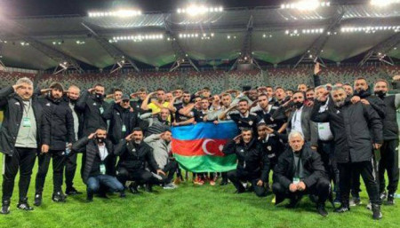 Ադրբեջանական ակումբի ֆուտբոլիստները, մարզչական շտաբն ու ակումբի մյուս ներկայացուցիչները կիսաշրջան են կազմել և ռազմական ողջույն են տվել՝ աջ ձեռքը դնելով քունքին:
