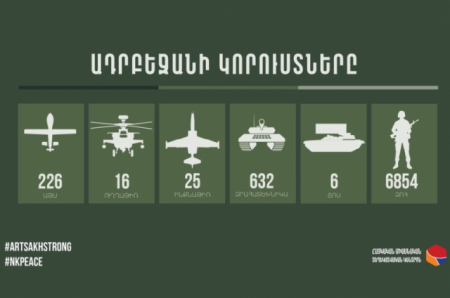 Հակառակորդի կորուստների վերաբերյալ վերջին տվյալներով խոցվել է ևս 3 ԱԹՍ, 14 զրահատեխնիկա, կա 105 զոհ: Տվյալներոը պատկերող ինֆոգրաֆիկան տարածել է Հայկական միասնական տեղեկատվական կենտրոնը։