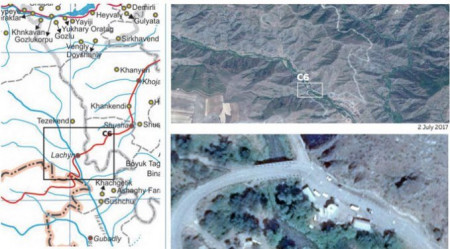 Լուսանկարում Լաչինի հսկիչ անցագրային կետի լուսանկարն է՝ արված Արդբեջանական արբանյակից։