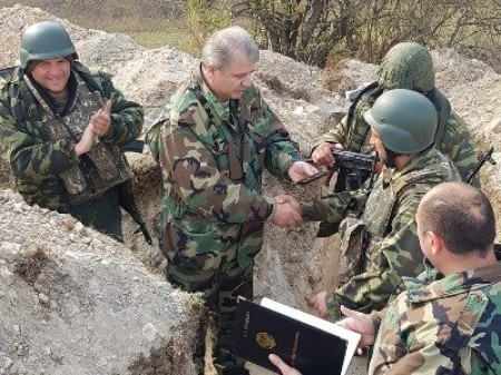 Կամո Աղաջանյանը մարտական դիրքում Նորայր Միրզոյանին հանձնել է գեներալ-մայորի ուսադիրները. Լուսանկար