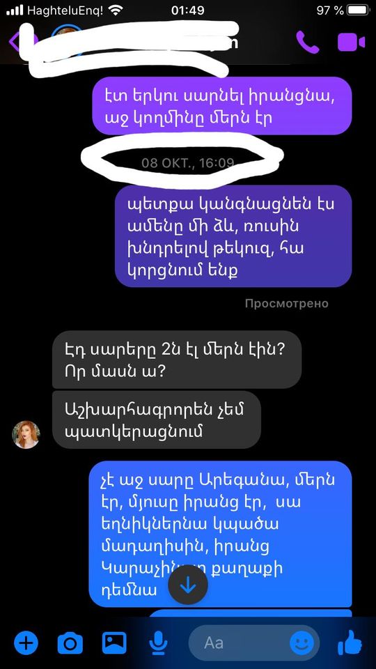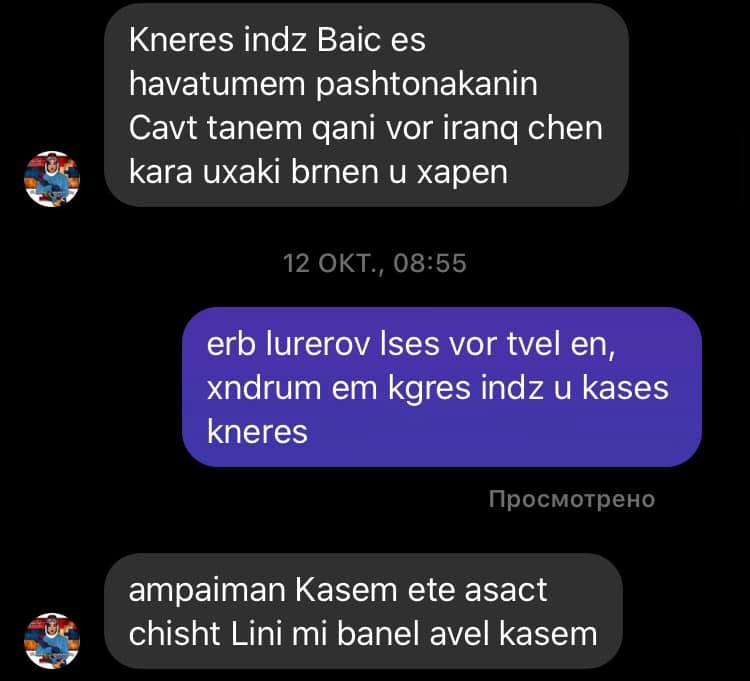 Վիդեոյին կից ներկայացնում եմ իմ ու ընկերոջս խոսակցությունից հատված, հոկտեմբերի 8-ի ու 12 -ի դրությամբ։ Ինձ նաև չեն հավատացել։