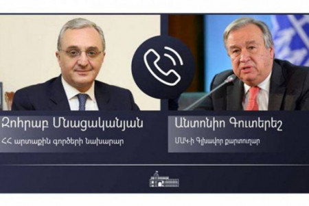 ԱԳ նախարար Զոհրաբ Մնացականյանը հեռախոսազրույց է ունեցել Անտոնիո Գուտերեշի հետ