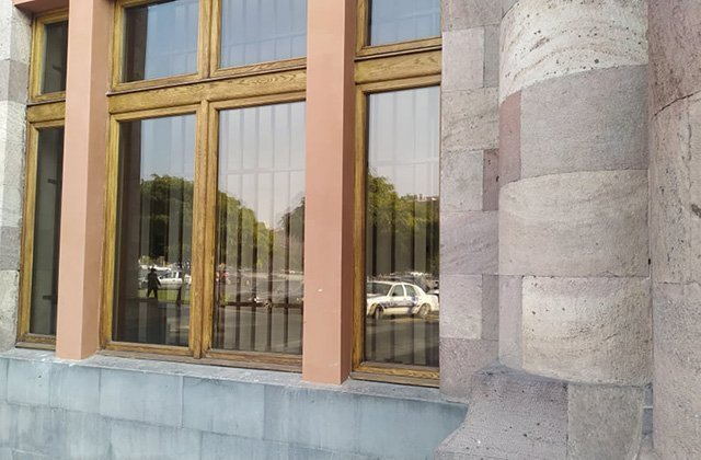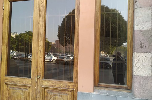 168.am-ի տեսախցիկը ֆիքսել է, որ Կառավարության շենքի ճակատային հատվածի բոլոր մուտքերի դռներն ու պատուհանները պատվել են ճաղավանդակներով:
