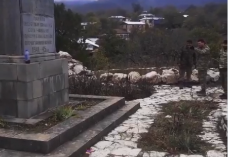 Ինչպես են ադրբեջանցի զինվորները Արցախի Ավետարանոց գյուղում պղծում Հայրենական պատերազմին նվիրված հուշաքարը. ռուս լրագրողը տեսանյութ է հրապարակել