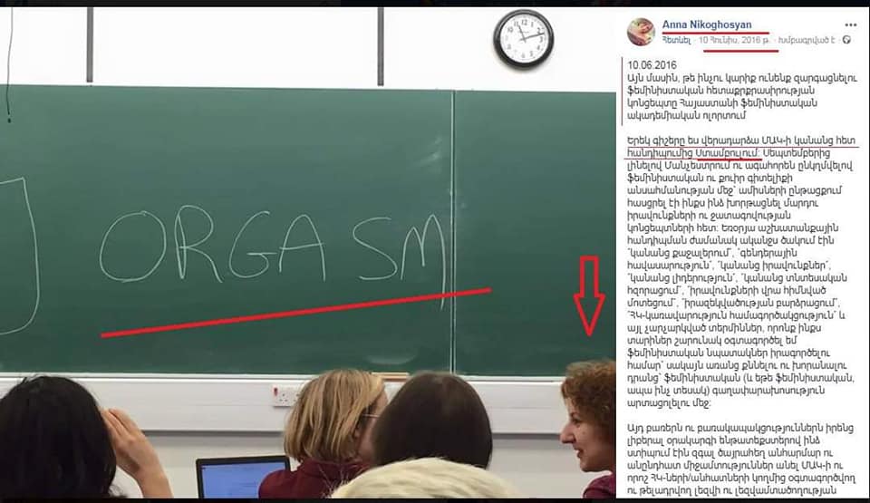 Կից տեղադրում եմ Թուրքիայում վերապատրաստումներ անցած Աննայից մի քանի նյութ՝ թեմային անծանոթ մարդկանց համար։ Հիշեցնեմ նաև, որ Աննան «Քաղաքացիական պայմանագիր» կուսակցության «Վերադարձի (տեսնես ում վերադարձի) հիմնադրամի» հոգաբարձուների խորհրդի անդամ Լառա Ահարոնյանի շրջապատից է»։