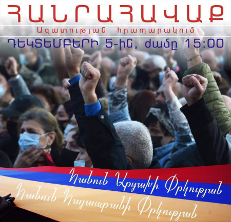 Դեկտեմբերի 5-ին՝ ժամը 15:00-ին, Ազատության հրապարակում հրավիրվում է համապետական հանրահավաք. Իվետա Տոնոյան
