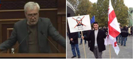 Ձախից ՀՀ ԱԺ պաշտպանության և անվտանգության հարցերով հանձնաժողովի նախագահ, «Իմ քայլը» իշխանական դաշինքի պատգամավոր Անդրանիկ Քոչարյանը ՀՀ ԱԺ ամբիոնից հայտարարել է Թուրքիայի և Ադրբեջանի հետ երկխոսության ու դիվանագիտական հարաբերությունների հաստատման անհրաժեշտության մասին։ Իսկ աջից նրա զավակն է... Դե դուք հիմա արդեն հասկանում եք, որ մեզ պատրաստում են երկրորդ Վրաստան դառնալու...