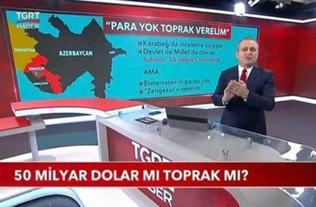 Թուրքական TGRT հեռուստաընկերության լուրերի եթերում հաղորդավար Էքրեմ Աչըքելը լայն անդրադարձ է կատարել Հայաստանում տիրող իրավիճակին եւ Ադրբեջանի կողմից Հայաստանին ներկայացրած 50 մլրդ դոլար փոխհատուցման մեխանիզմին։