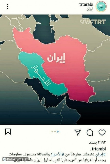 Թուրքական պետական TRT հեռուստաալիքը, ակտիվորեն նպաստելով Իրանի հյուսիսարևմտյան նահանգների անջատմանը և դրանք որպես թուրքական տարածքներ ներկայացնելուն, անցել է հարավարևմտյան շրջանների անջատումը քարոզելուն, որտեղ ապրում է հիմնականում արաբ բնակչություն: