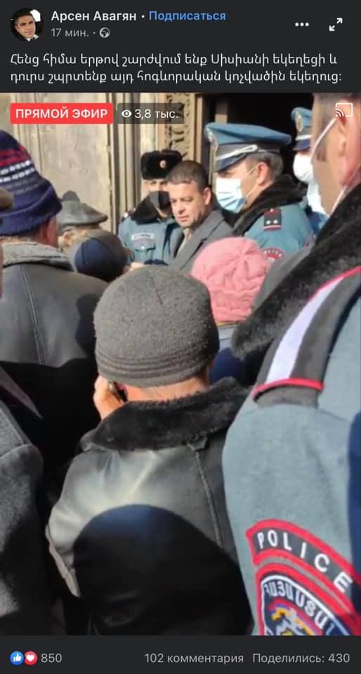 Փաշինյանի կուսակցության Սիսիանի կառույցի անդամները Սիսիանի հրապարակից երթով շարժվում են եկեղեցի՝ հաշիվ պահանջելու քահանայից: