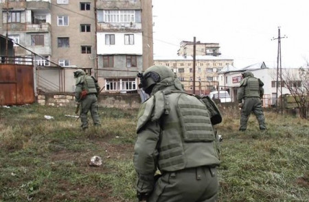 Լեռնային Ղարաբաղում ռուս խաղաղապահները ավարտում են ականազերծման աշխատանքները Ստեփանակերտի հյուսիսային հատվածում, տեղեկանում ենք ՌԴ ՊՆ կայքէջից: