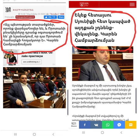 Դավաճան Նիկոլի թիմակից, Սյունիքից ընտրված քայլիստ երեսփոխանն ամեն ինչի պատրաստ է պաշտպանելու հարազատ ֆյուրերին... Գործը հասել էր նրան, որ սույն պատգամավորի հորաքույրը սյունեցիների անունից "փրկիչ" էր անվանում անվտանգության գոտին թուրքին նվիրած դավաճան Նիկոլին...