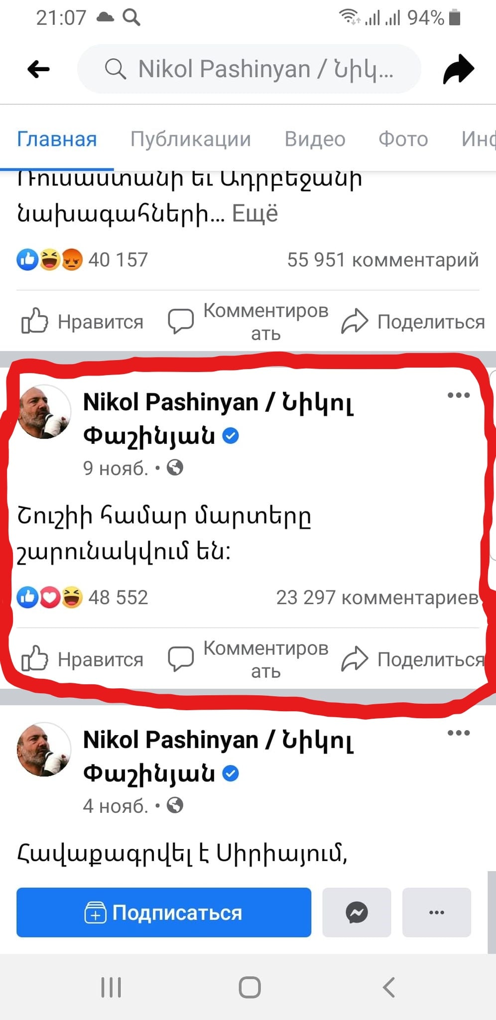 Էս երբեք չմոռանաք. կապիտուլացիայի պայմանագրի կնքման օրվա երեկոյան ասում է, մարտերը Շուշիի համար շարունակվում են