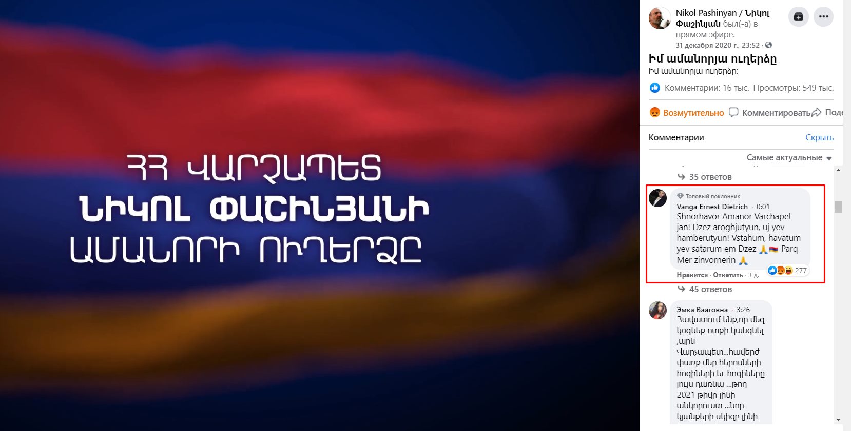 Cover photo-ն նիկոլի նկարն ա, ամեն տեղ քոմենթներ ա գրում, վստահում ու անվերապահ սատարում ա դավաճանին։ Դե նիկոլին սատարողներն էդ են. կամ պետք ա լգբտ լինեն, կամ աղանդավոր, կամ խելքից թոփալ։ Էռնեստն ըտրել ա առաջին տարբերակը։ Շնորհավոր, այ ̶ո̶ռ̶հողատու։